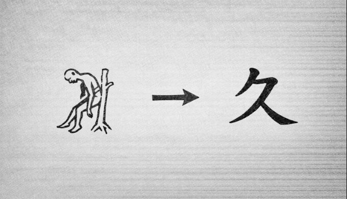 」という字が含む意味を辿っていくと、それは「死体を後ろから木で支えている姿の象形」と説明されることがあります。