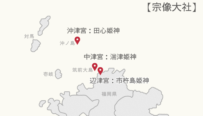 宗像大社 の配置…沖津宮・中津宮・辺津宮。